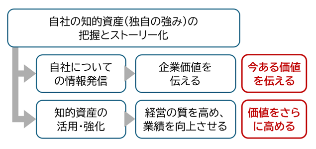 こうした知的資産はそれがその企業に根づいていればいるほど、その企業にとって当たり前のこととなり、意識されにくくなります。知的資産経営は、企業が自社の知的資産を自覚的に認識し、強みとして情報発信することで価値を高め、同時にそれを活用することで経営向上につなげる手法です。
